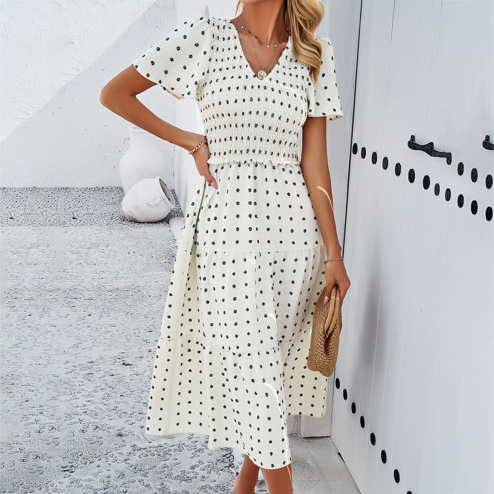 The Lola Dress combines timeless charm with a flattering fit designed to boost your confidence. Its smocked bodice defines the waist, while the flowy skirt provides tummy coverage for a smooth silhouette. Crafted from lightweight, breathable polyester, it keeps you cool and stylish. With its classic polka dot print, Lola is the perfect choice for adding a fun yet sophisticated touch to any outing.